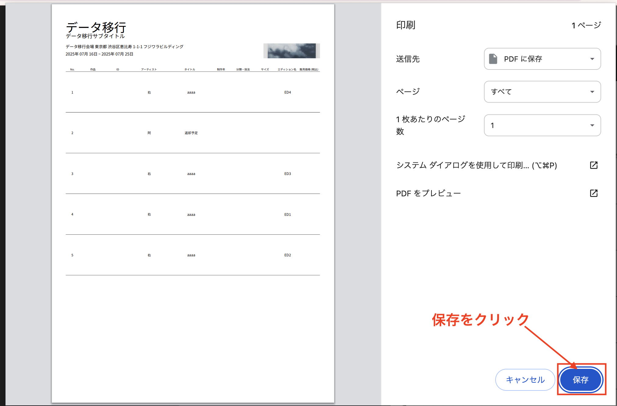 展示会や販売イベントなどの場面で、事前に作品リストを印刷したいギャラリー担当者